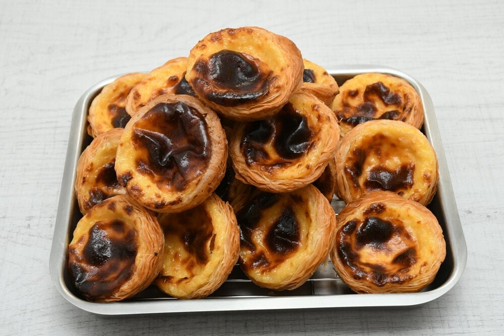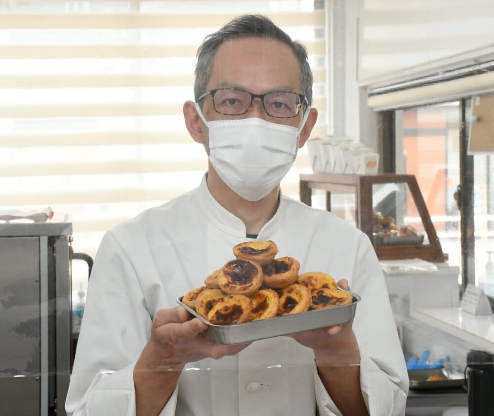 エッグタルトはパイやクッキー生地で作った器にカスタードクリームをのせて焼き上げた洋菓子で、ポルトガルやマカオ、台湾などで人気。山陰両県ではたまにコンビニのスイーツコーナーに並んでいるのを見かける程度で、専門店は珍しい。