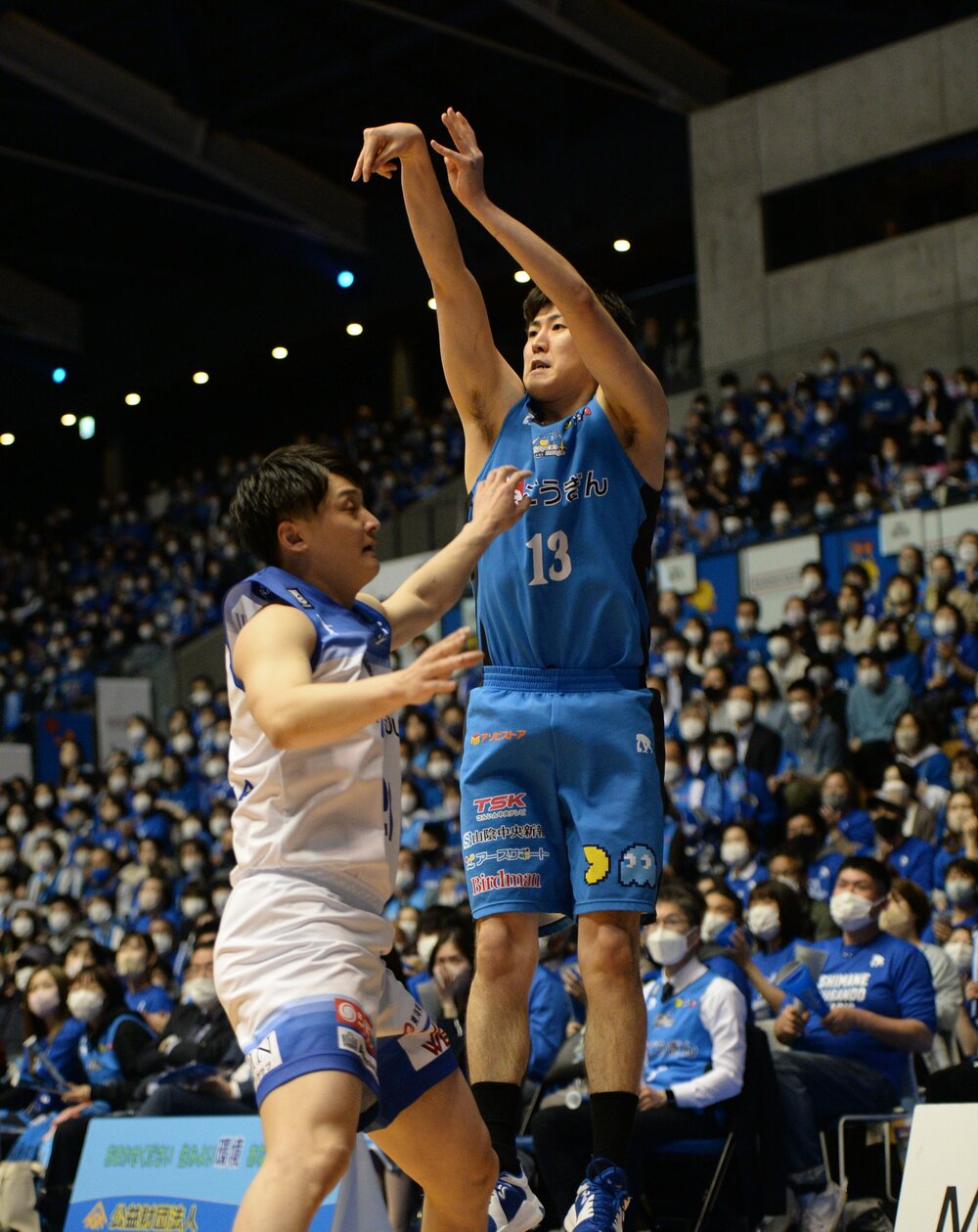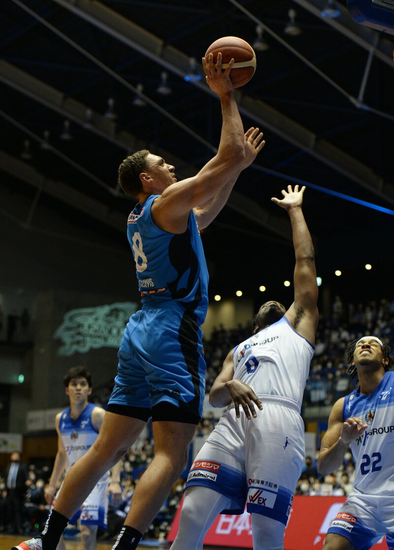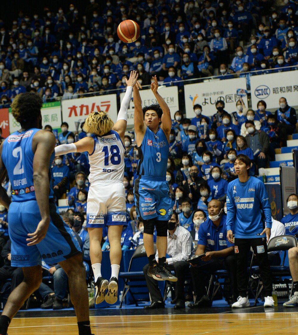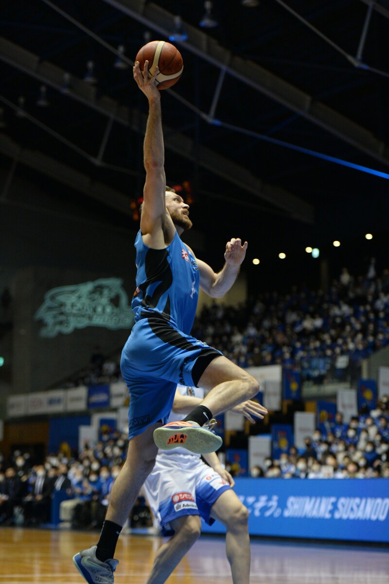 バスケットボール男子Bリーグ1部(B1)西地区の島根スサノオマジックが、15日にホームの松江市総合体育館で行われた第40戦でファイティングイーグルス名古屋(西地区)を88-65で下し、B1での球団記録となる10連勝を達成した。通算33勝7敗で、チームは西地区首位をがっちりキープ。18日からの昨季チャンピオン・宇都宮ブレックス(東地区)との2連戦に大きく弾みをつけた。熱く盛り上がり、「メモリアル」となった激闘を写真で振り返る。