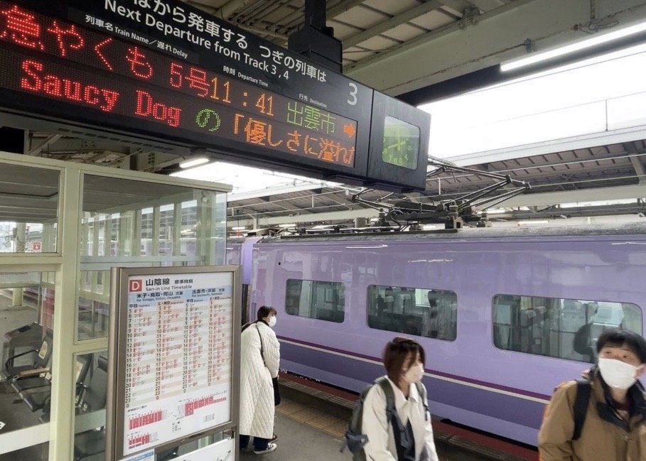Saucy Dogが松江市でライブをした1月13、14の両日に合わせ、JR松江駅構内にホワイトボードが用意され、ファンからメンバーに向けた手書きのメッセージであふれた。通常は発車時刻を知らせる電光掲示板も「Saucy Dogの皆さんおかえりなさい♪ライブにお越しの皆さん山陰に来てごしなってだんだんね~(来てくれてありがとうね)」と出雲弁を交えて出迎えた。