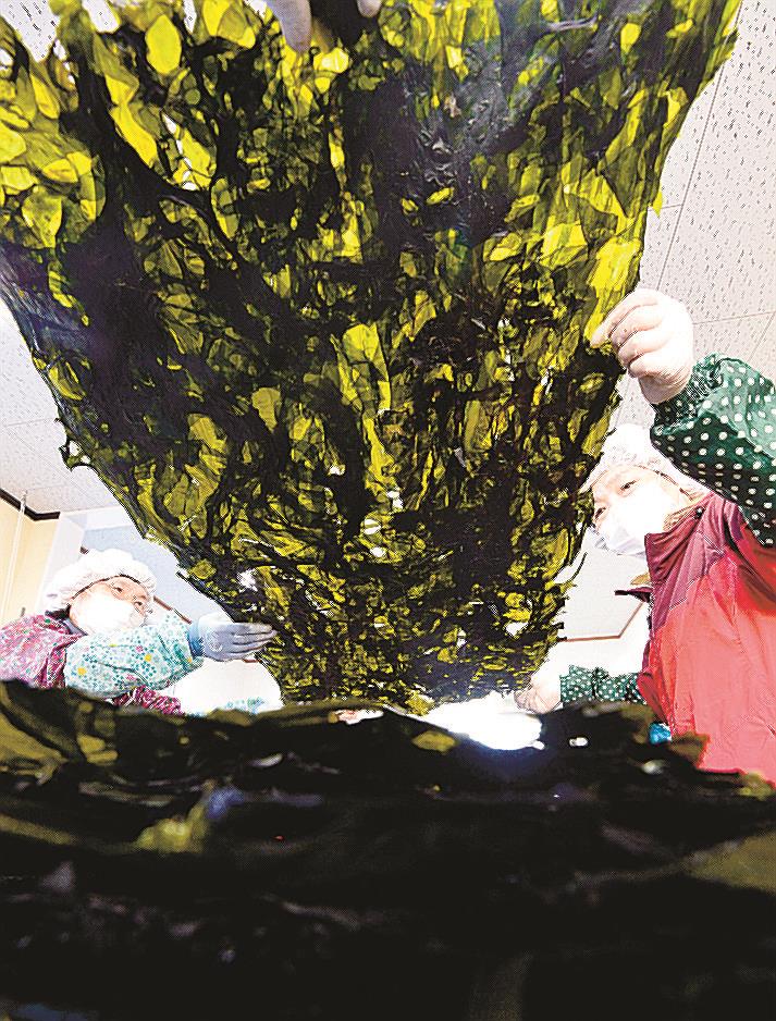 山陰特産の板ワカメ作りが島根、鳥取両県の漁業集落で本番を迎えている。日本海が恵む春の風物詩として受け継がれ、各地の加工場で漁業者らが新物の出荷作業に追われている。