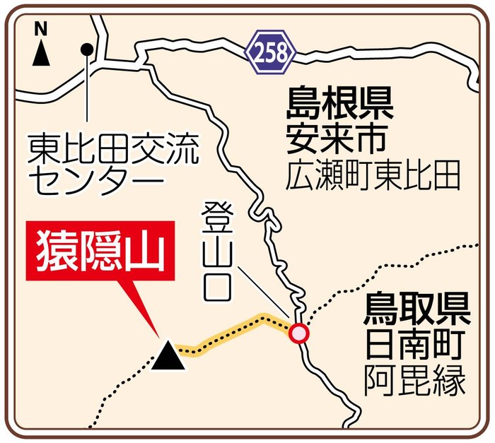 「猿隠山に一緒に登りませんか」。3月半ばに職場にかかってきた電話で誘われ、安来市広瀬町東比田と鳥取県日南町阿毘縁にまたがる猿隠山(さるがくれやま、816メートル)に登ることにした。面識のない方からの思わぬ誘いに若干、面食らったが、山歩きは好きだし、いい機会だと思った。(安来支局長・桝井映志)