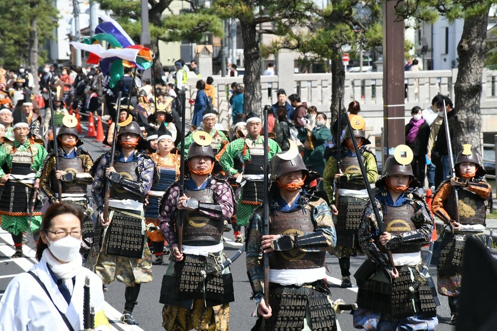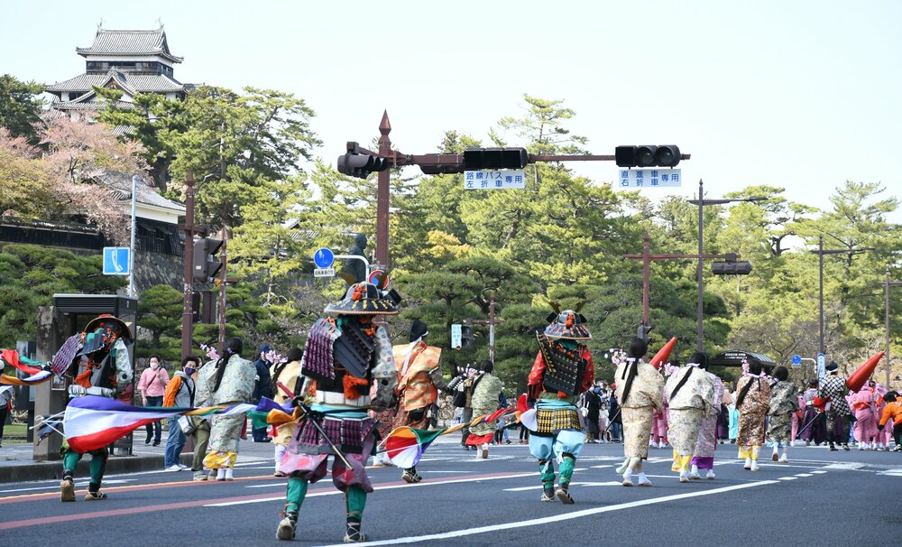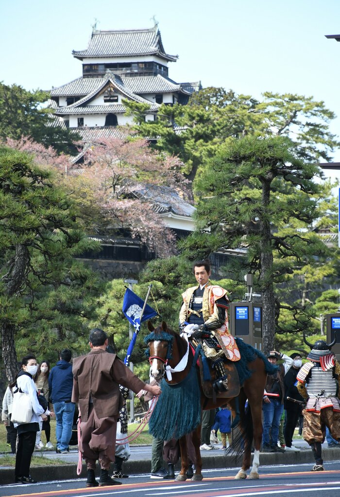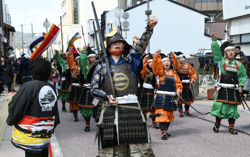 城下町に春の風物詩が戻ってきた―。松江城を築いた武将・堀尾吉晴一行の約400年前の入城を再現する「松江武者行列」が8日、新型コロナウイルス禍による中止を経て4年ぶりに実施された。甲冑(かっちゅう)や着物に身を包んだ約170人が練り歩く「時代絵巻」に、詰めかけた観光客らが見入った。当日の様子を写真で振り返ります。記事の全文はこちらから