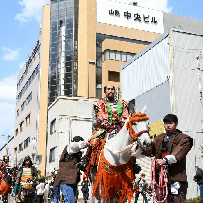 堀尾吉晴らにふんして街中を練り歩く=松江市殿町