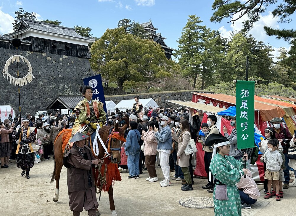 松江城下で豪華絢爛な「時代絵巻」を繰り広げた=松江市殿町