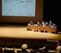 風力発電事業の問題点を広く訴える歯科医師・武田恵世さん(65)=三重県名張市=が23日、安来市内で講演した。三重県などの事例を紹介しながら二酸化炭素(CO2)排出削減への効果などを疑問視し、低周波音による健康被害など悪影響を指摘した。講演会は「出雲・伯伎神話の里と豊かな自然を守る会」(木村良臣代表)が主催した。