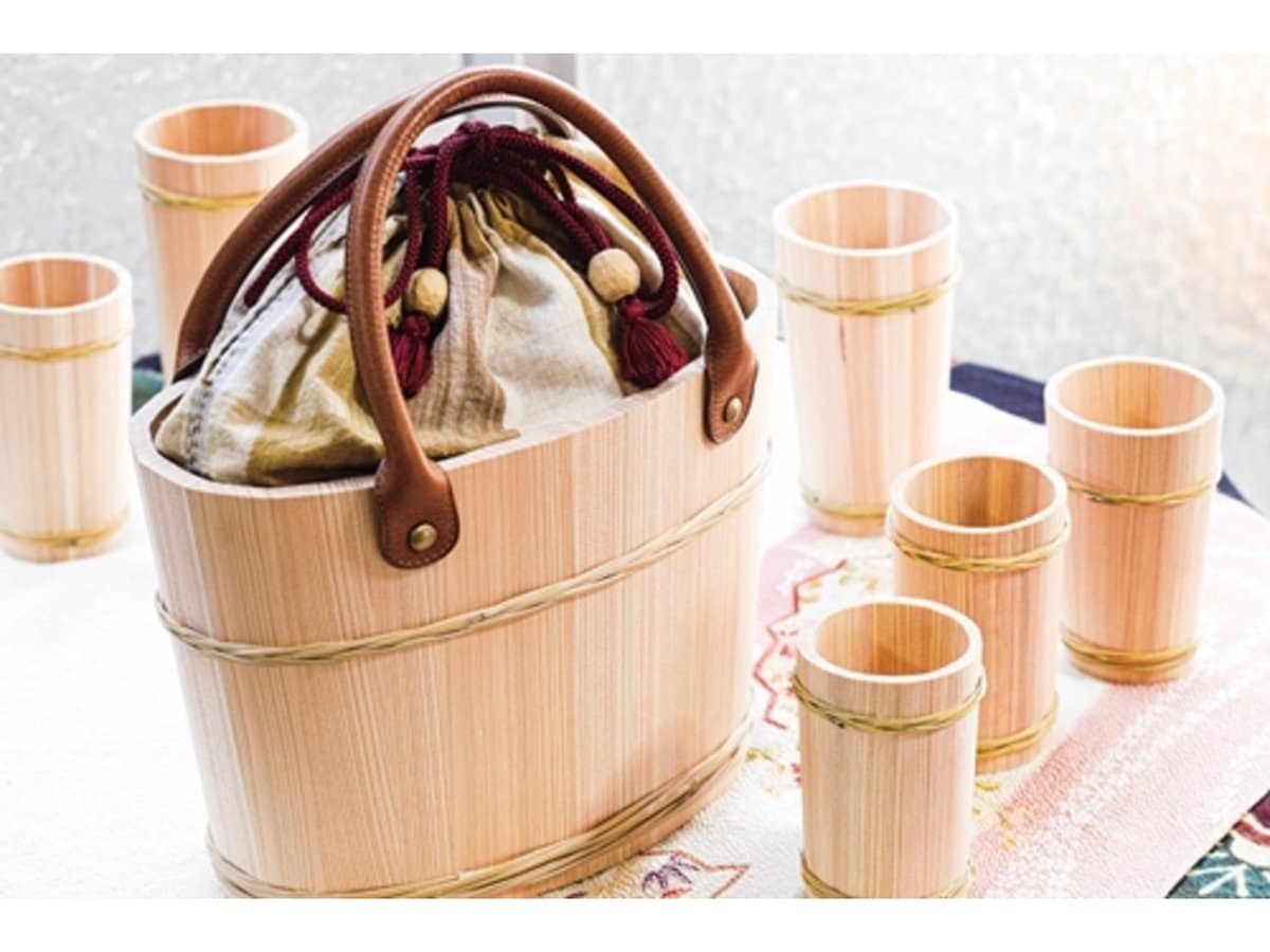 桶に使う素材は、松江市の木材店から仕入れるサワラ。水や湿気に強く耐久性があり、重量も軽く扱いやすい。爽やかな色合いで上品な見た目が印象的だ。