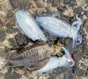 ホオズキイカの一種は24日早朝、長尾田地区の沖にある定置網の中に浮いているのを吉田水産(隠岐の島町北方)の吉田稔社長(61)が見つけた。吉田さんは「最初はクラゲに見えたが、目と足が...
