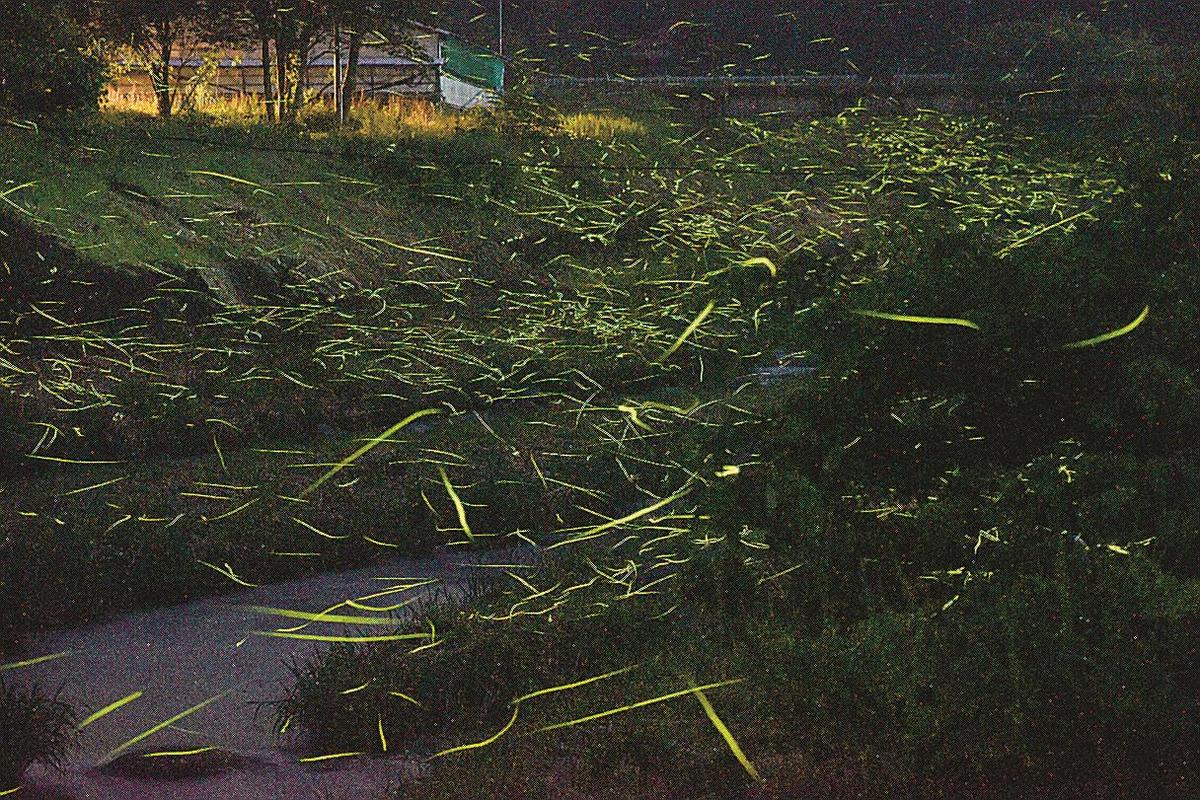 【浜田】浜田市旭町市木地区の市木川で、ホタルが見頃を迎えた。川のせせらぎが聞こえる中、闇に浮かぶ光跡が幻想的な風景をつくり見る人を癒やしている。6月いっぱいまで楽しめるという。