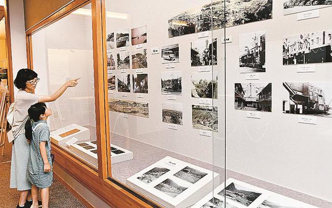 同日始まった企画展「昭和ノスタルジック写真館」では、2006年に市内の豊川公民館で見つかった1943(昭和18)年の水害の様子を写したガラス乾板撮影の写真10点も含め62点を展示。来場者がモノクロ写真一点一点に足を止めて見入った。