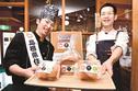 この日は、見頃を迎えた香木の森公園のバラ園で、国産和牛を使ったローストビーフ丼とバラを使った特製ジュースを販売し、訪れた観光客らが風景を楽しみながら味わった。