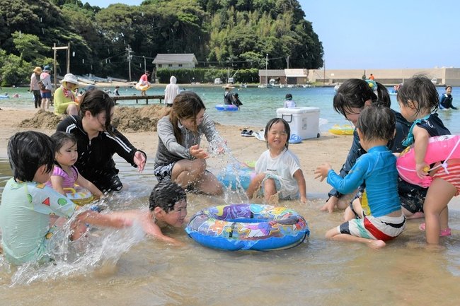 猛烈な暑さをしのごうと、松江市美保関町北浦の北浦海水浴場は多くの人々でにぎわった。友人や親戚ら計9人で訪れた同市古志原の会社員、佐藤瑠莉奈さん(26)は「倒れそうな暑さ。水分を取りながら乗り切りたい」と話した。益田市高津町の高津柿本神社でイベント来場者にアンケート調査していた益田高校3年の野村涼さん(17)と三浦成美さん(17)は「水分補給しながら声かけしているが、さすがに今日は暑い」とタオルで汗を拭った。