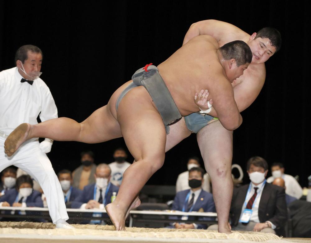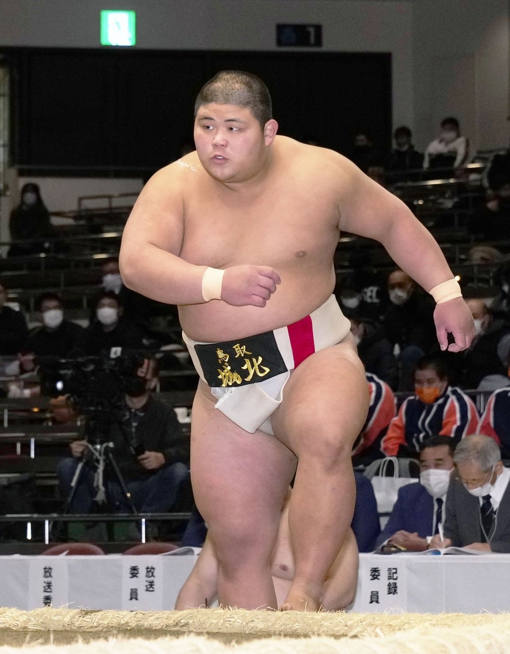 大相撲名古屋場所千秋楽(23日・ドルフィンズアリーナ)19歳の新入幕伯桜鵬(本名・落合哲也 倉吉市出身、鳥取城北高出)が関脇の豊昇龍に上手投げで敗れ11勝4敗になり、109年ぶりとなる新入幕の優勝を惜しくも逃した。