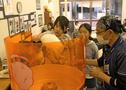 23人が参加し、野菜カレー、コールスローサラダ、スクランブルエッグ、ケーキを味わった。食後は明治安田生命松江支社松江北営業所が提供した工作キットを使い、恐竜や家具の模型作り、透明なプラスチック板に好きな絵柄を描いて加工するキーホルダー作りに同営業所社員と共に取り組んだ。