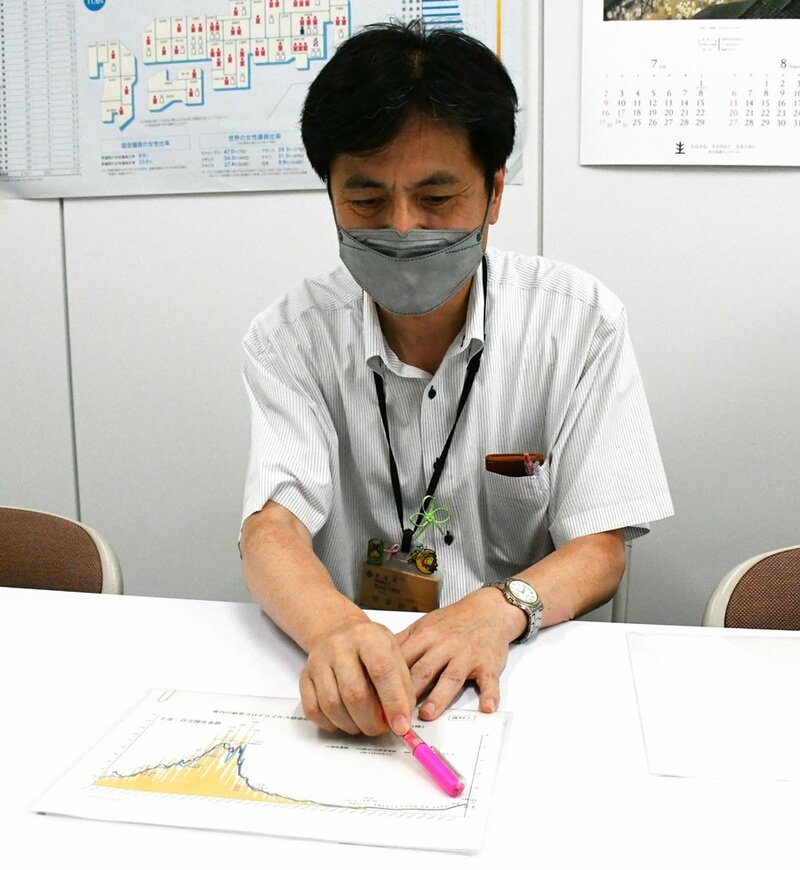 新型コロナウイルスの感染者が全国的に増加傾向になっている。島根、鳥取両県では今月17~23日に報告された1定点あたりの感染者数が島根10.68人、鳥取19.97人で、前週比それぞれ1.94人、7.28人増加。島根県では5類移行後、初めて10人を超え、鳥取県では、流行情報が注意レベルに達した。今後、お盆の帰省シーズンを迎え、ますます人の移動が活発化していく。今後の感染状況の見通しと、どのような対策が必要か、島根県感染症対策室の田原研司室長に聞いた。