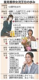 <略歴>さとみ・かな 出雲市出身。12歳でプロ入りし、大社高校在学中の2008年、16歳で初の女流タイトルとなる倉敷藤花を獲得。19年には初代清麗となり、史上初の女流六冠を達成した。現在は女流王位のほか清麗、女流名人、倉敷藤花を保持する。