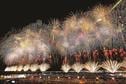「神々の花火 2日間かけて八百万(やおよろず)の神々が宍道湖に集結」をテーマに、湖上4カ所から同時に打ち上げる演出や、多色に変化する花火を用意。初日は「豪華絢爛(けんらん)な神々の宴」などを表現した。2日目の6日も、午後8時から1万発を打ち上げる。