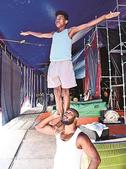 後は、自分の意志で足場から足を離すだけ。しかし、片手でバーをつかみ片足をあげることはできたものの、両足とはいかない。ついに、緊張で硬まった体を団員に持ち上げられてしまった。「本当に飛ぶのか」と考えた次の瞬間、「せーの!」のかけ声とともに投げ出された。