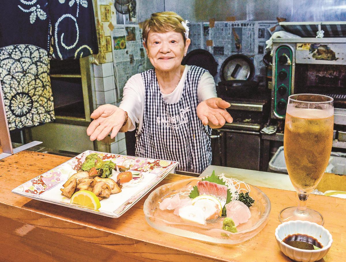 居酒屋「大衆料理こがね」(朝日町)は刺し身4種盛りまたは鶏もも肉の香味焼きの1品と、飲み物のセットを1200円で提供する。店主の三輪宏二さんは「気軽に訪れて、わいわい楽しんでほしい」と話した。