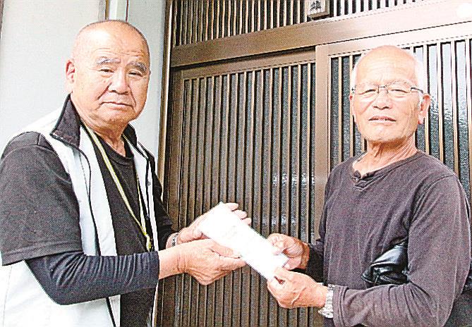大羽会長(82)は「自治会の皆さんがコロナで落ち込むことなく、元気を出して集落をもり立ててくれることに期待している」と説明。使途は自由で大羽会長から資金を受け取った青木辰雄さん(76)は「思いがけないことで喜んでいる。家庭内でバーベキューをしてコロナに打ち勝ちたい」と話した。 (青木和憲)