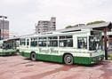 バスの利用促進などを目的に、松江市交通局と一畑バスが2010年から開き、12回目。会場には市営バスや観光バス6台が並び、運転席操作体験では園児や児童が帽子をかぶってハンドルを握り、憧れの運転手になりきった。