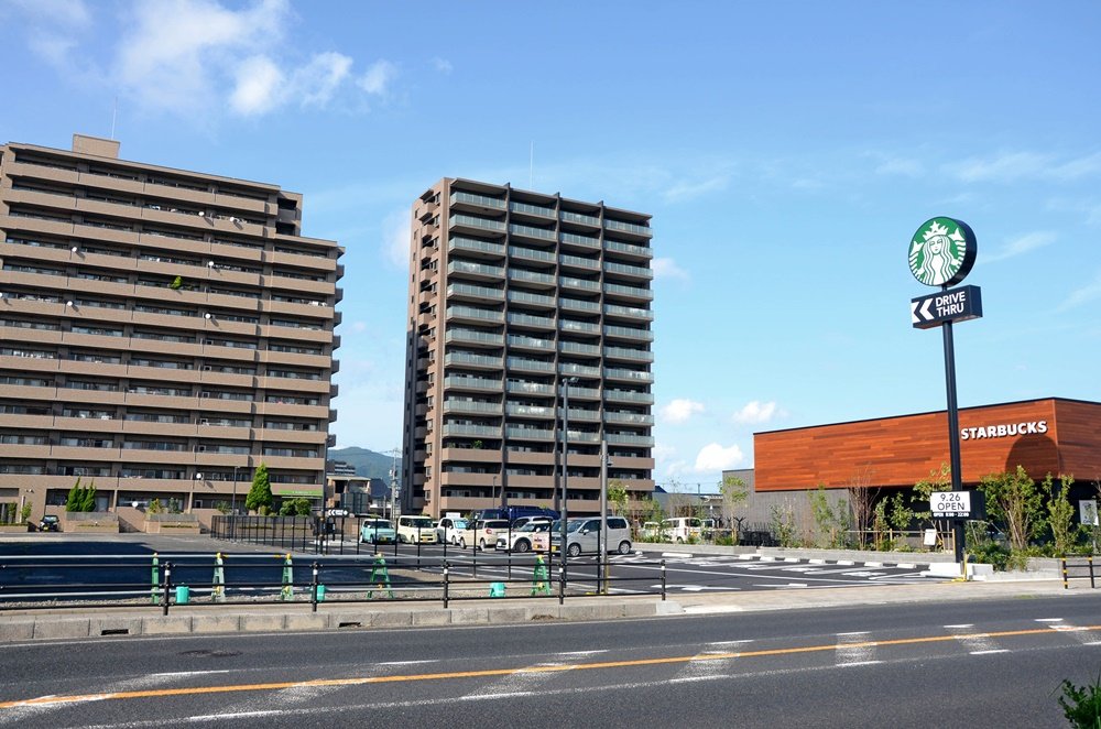 1期で完成した建物は、スターバックスコーヒージャパンがドライブスルー併設型店舗として活用する。今年4月から工事を進め、19日に施設の引渡しを完了した。