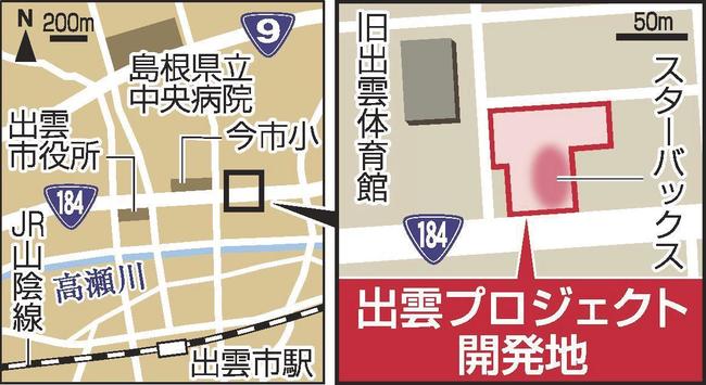 出雲プロジェクトは、地方都市の共通課題となっている市街地空洞化に歯止めをかけようと、市民が集う拠点を設け、若年層の定住や子育て環境の充実を目指す民間開発。出雲市今市町北本町4丁目の国道184号(出雲神立通り・旧国道9号)沿いの旧出雲体育館隣接地、5265平方メートルを開発する。