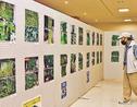【益田】ゴーヤーを育ててすだれ代わりにする「緑のカーテン」の写真展が19日、益田市常盤町の市役所1階ロビーで始まった。ゴーヤーの苗を無料配布する益田法人会(森本恭史会長)が活動成果を発表する場として実施。102点が並び、訪れた人の関心を誘っている。29日まで。