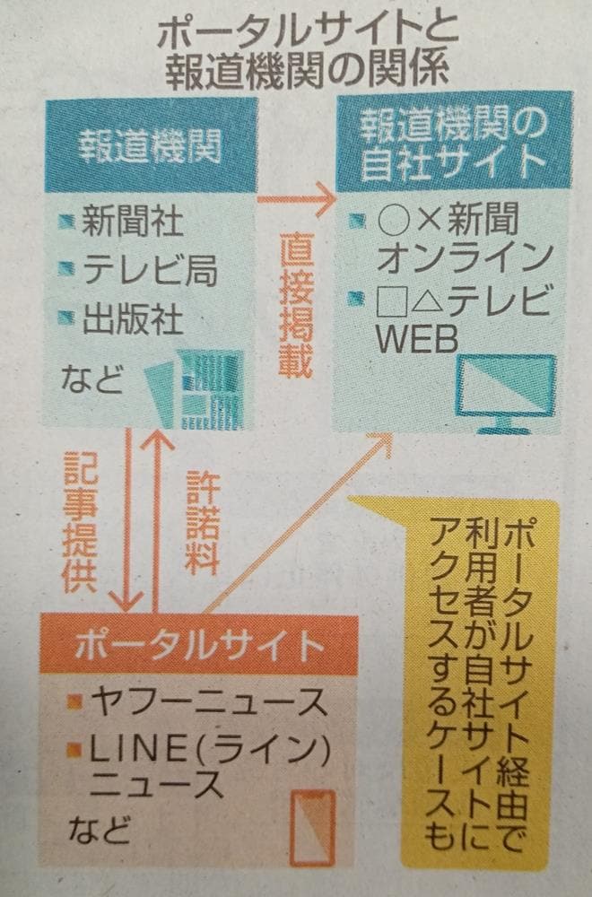「このコラムの値段は?」。そう聞かれたら困ってしまう。新聞購読料に含まれているが、どれほどの割合を占めるのか。記事ごとの単価を合計すると、1部にこれだけ豊富な情報量を詰めた新聞はお買い得だろう。手前みそだが▼コラムをはじめ一部の記事は、巨大IT企業などが運営するニュースポータルサイトを通じても配信される。昨年7月の参院選を受けて書いたコラムは、会心作でもないのに1年以上にわたり、高い閲覧数を誇った。こちらの意図しない刺激的な見出しが付いたのが一因だ。うれしい半面、悩ましくもある▼一方、取材執筆の労力に比べ、対価としての記事使用料(許諾料)は必ずしも高くない。ニュースのインターネット配信を巡って公正取引委員会が先日、IT企業と、記事を提供するメディア各社の取引実態の調査報告書を公表した。最も利用者が多いヤフーについては「優越的地位にある可能性」を指摘。記事使用料が著しく安い場合、独占禁止法上問題になり得ると警告した▼加工食品などとは違い、記事の適正価格は決めづらい。ただ、安く買いたたかれているのなら是正が必要だ。記事に限ったことではない▼今回の調査により報道機関は記事の対価を巡る交渉の後ろ盾を得た格好だが、巨大IT側の対応が注目される。もし、このコラムがポータルサイトで採用された際、どんな見出しが付くのだろう。興味深い。(健)