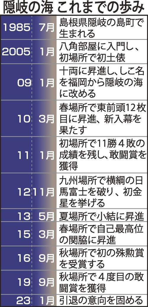 【記事】隠岐の海 引退表明 現役18年「悔いなし」 年寄「君ケ浜」襲名 部屋付き親方に