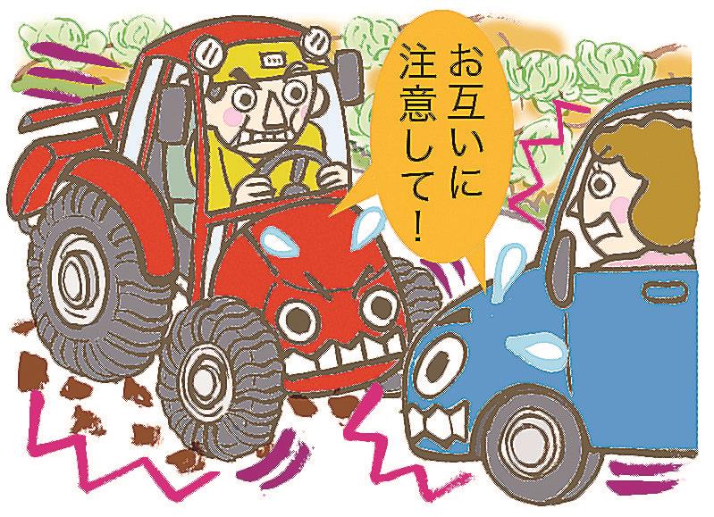 トラクターなどが低速で公道を走っている際、自動車と衝突する事故も少なくない。夜間は後続車から発見されにくいため、同室は「農業の従事者だけでなく、周囲を通過する人も注意してほしい」と説明している。