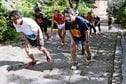 今夏の豪雨でコースに影響が出て中止となった一畑薬師マラソン大会の替わりに開催されるウオーキングイベント「一畑薬師ウオーク」(29日・出雲市、山陰中央新報社主催)を前に、地元企業などから参加したボランティアが21日、メインとなる一畑薬師(出雲市小境町)の1138段の石段を清掃した。