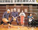 須山篤志会長は出席した会員や県の行政関係者ら約130人を前に「今後も会員が力を合わせ、島根県の発展と京都との交流促進の一役を担いたい」とあいさつし、長年、県人会の活動を支えた個人や団体に感謝状を贈った。