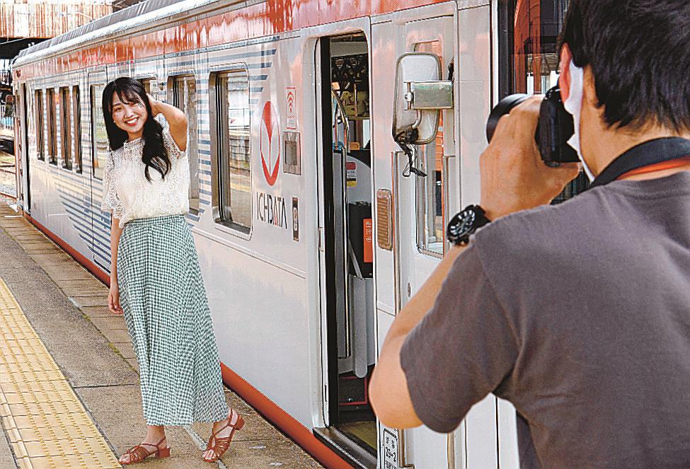 撮影会は電車の利用促進につなげようと一畑電車(出雲市平田町)が企画し4回目。松江市上乃木4丁目のモデルスタジオミューズが協力した。(月森かな子)