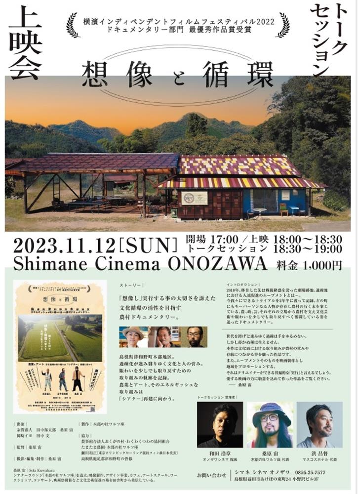 上映後には、桑原さんとシマネシネマオノザワの和田浩章館長、マスコスホテルの洪昌督代表の3人によるトークセッションもあり、過疎が進む中での地域振興について、クリエーター目線での取り組みやあり方を探る。