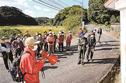 知夫里島観光協会が主催し、来居地区にある願成寺の裏から古道に入った。前半は細い急坂の山道が続き途中、約15年前に移転した願成寺跡地や道祖神の宮で足を止めた。