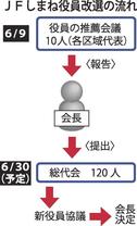 JFしまねの定款では、地区代表者ら10人による推薦会議で新役員案を決め、会長に報告。会長が総代会(定数120人)に提出し、承認を得ることになっている。