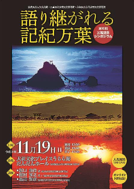 奈良県立万葉文化館と三重県立斎宮歴史博物館、島根県立古代出雲歴史博物館は、19日(日)午後1時半から、大社文化プレイスうらら館だんだんホール(出雲市大社町杵築南)で、第6回三館連携シンポジウム「語り継がれる記紀万葉」を開く。
