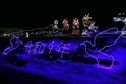 益田市有明町の島根県芸術文化センター・グラントワでイルミネーション「グラナリエ」の点灯が始まった。中庭広場の水盤スペース中央に設置されたツリーが水面や回廊のガラスに反射しながら輝き、来館者が冬の訪れを感じている。12月25日まで。