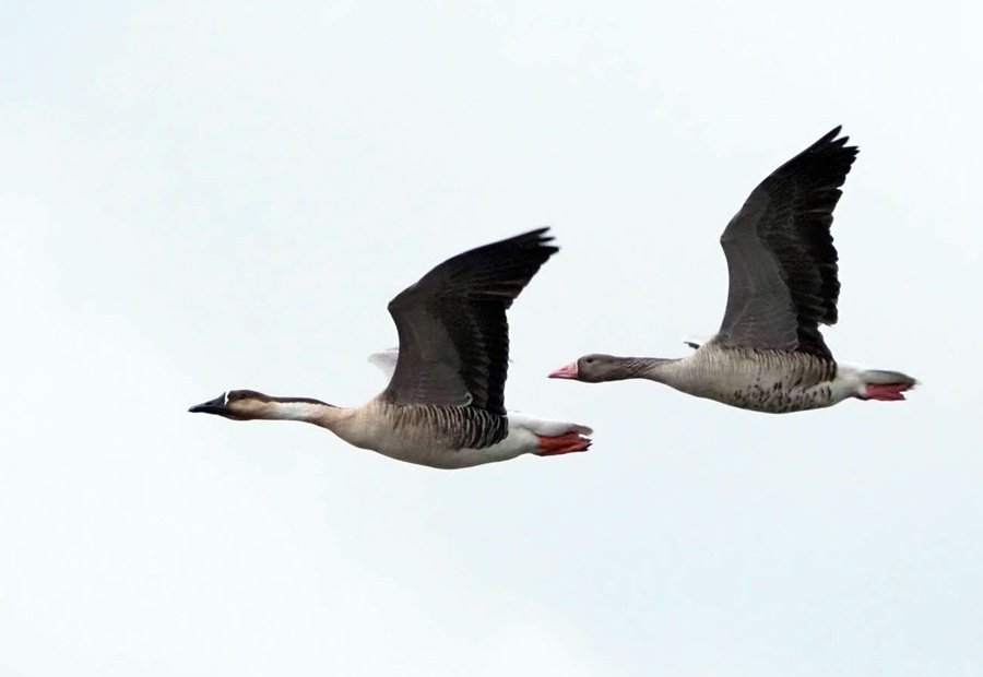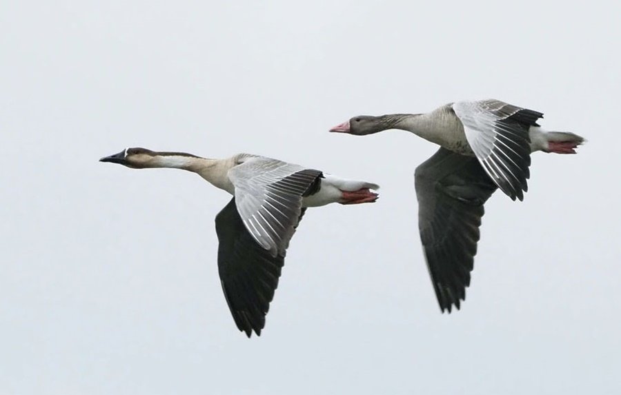 米子市彦名新田の米子水鳥公園に30日、国内では確認事例が少ないハイイロガン1羽と、サカツラガン1羽が同時に飛来した。この2種が行動を共にすることは珍しいという。