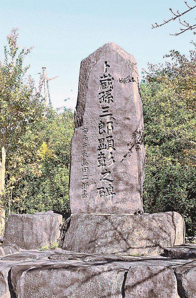 地元の荒島地区活性化(かっせいか)推進(すいしん)協議会(きょうぎかい)は2000年、孫三郎の偉業をまとめた顕彰資料集(けんしょうしりょうしゅう)を発行。創作劇(そうさくげき)の上演(じょうえん)や顕彰碑(ひ)も建立(こんりゅう)しました。毎年秋に開く古代出雲(いずも)王陵(おうりょう)の丘(おか)健康ウオークでは、卜蔵新田もコースに取り入れています。
