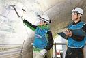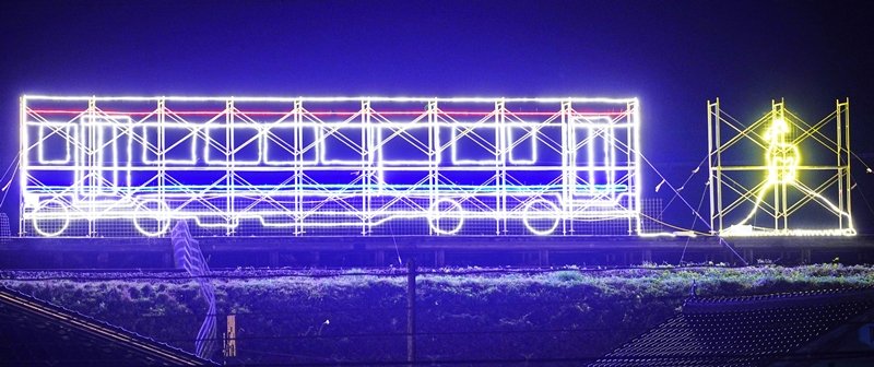 イルミネーションは、長さ16メートル、高さ4メートルで列車と同じ大きさ。都賀本郷連合自治会(田辺裕彦会長)が昨年に続き、約1万球の発光ダイオード(LED)電球を使って設置。3日に点灯を始めた。