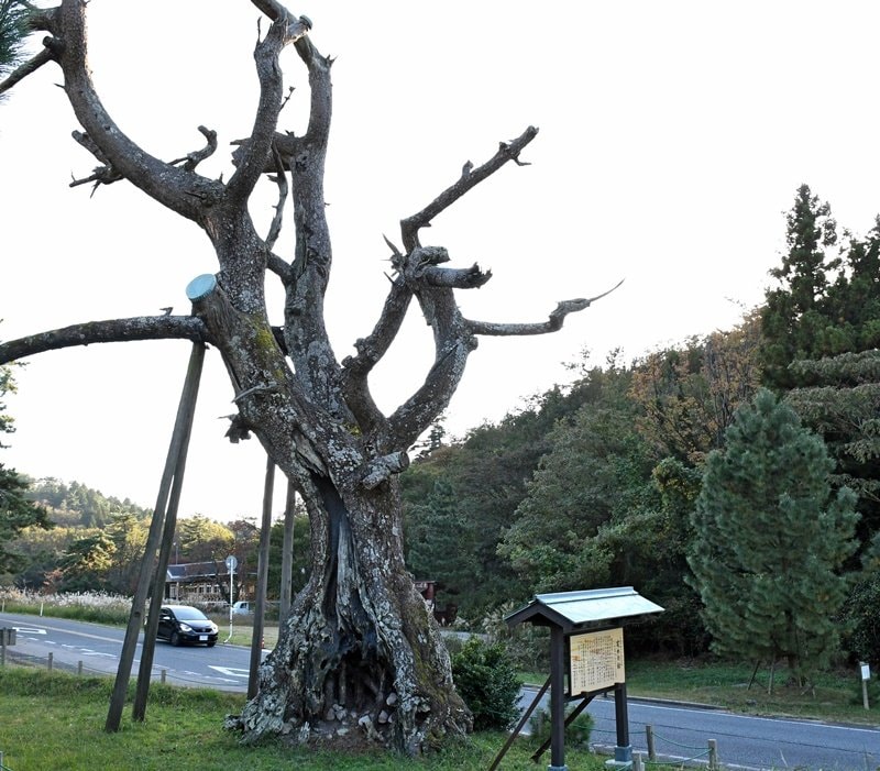 かつて県道を挟んで東と西に1本ずつ植わっていたが、西のマツは2007年に枯死して伐採。残る東のマツも21年ごろから急速に樹勢が衰え、住民や市教委の回復活動もむなしく今年6月、樹木医が枯死と判断した。