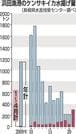 1~4月でみると、今年の水揚げ量は前年同期の約6倍に上り、5月以降も堅調に推移している。水産研究・教育機構水産資源研究所浮魚資源部(長崎市)によると、長崎県沖から島根県沖で豊漁傾向となり、詳しい要因は不明。昨年の産卵数は少なかったものの、個体の多くが大型魚類からの捕食を免れたと考えられるという。