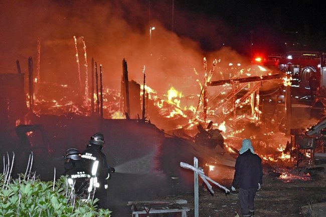 17日午後11時20分ごろ、浜田市三隅町湊浦、大道芸人の男性(50)方から出火し、木造平屋の母屋と離れが全焼した。近くの無職男性(79)方に燃え移り、木造2階建ての住居を全焼した。けが人はいなかった。