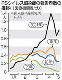 多くの子どもは2歳までに感染するとされるが、小児科・ぽよぽよクリニック(松江市東津田町)の田草雄一院長(55)は「昨年は徹底したコロナ対策でほとんどの感染症が流行しなかったため、免疫が鍛えられなかった乳幼児が増え、今年は感染が広がりやすくなっているのではないか」とみる。「生後3カ月未満の乳児は特に重症化しやすい。風邪症状があれば早めに受診して」と呼び掛けている。