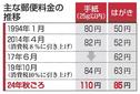 松江中央郵便局が1日に配達したのは、23年より約21万通少ない約117万1千通で、島根県内では約98万4千通少ない約514万通だった。鳥取県内は約72万通少ない約372万5千通。県民1人当たりの配達数は島根が7・9通、鳥取が6・9通だった。