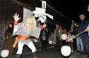 国の重要無形民俗文化財に指定されている大田市五十猛町の伝統行事「グロ」が11日、同町の大浦地区で始まった。漁港の脇に高さ15メートル、直径7メートルの仮屋が設置され、集まった住民が1年の無病息災や豊漁を願った。