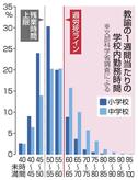 島根県内の教職員で、1週間に1日以上仕事を家に持ち帰る人の割合が小学校で6割弱、中学校と特別支援学校で5割強いることが、県教育委員会が初めて実施した抽出調査で明らかになった。県教委は事務をサポートする人材の確保を含め、時間内勤務の負担軽減に取り組む。