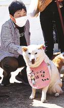 来店した出雲市古志町の公務員原健治さん(57)は「大きくなったねえ」と頭をなでる。まりちゃんを飼い始めた頃は、ぞうりをくわえて離さないほどやんちゃだったという。