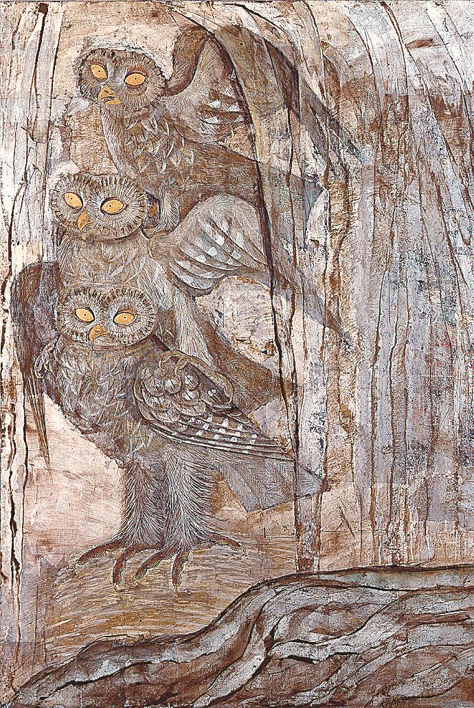 「生きもの讃歌(さんか)」と題する企画展では、フクロウやコンドルといった鳥、馬やクラゲなどの約60点を紹介する。表情に憂いを漂わせる女性たちの作品群とは一変し、親子やつがいで描いた動物の絵からは、家族愛や夫婦愛の温かみを感じさせる。石本氏の別の一面がうかがえそうだ。